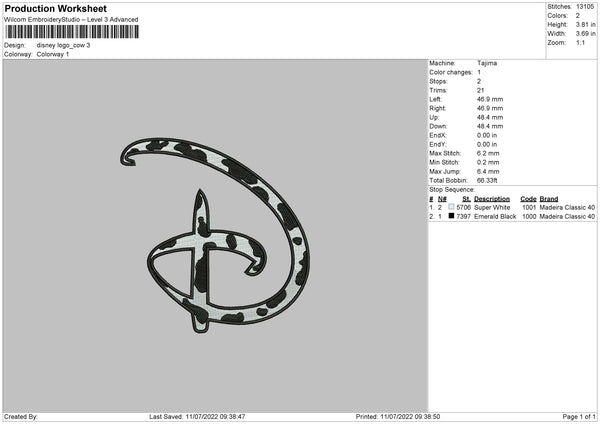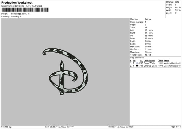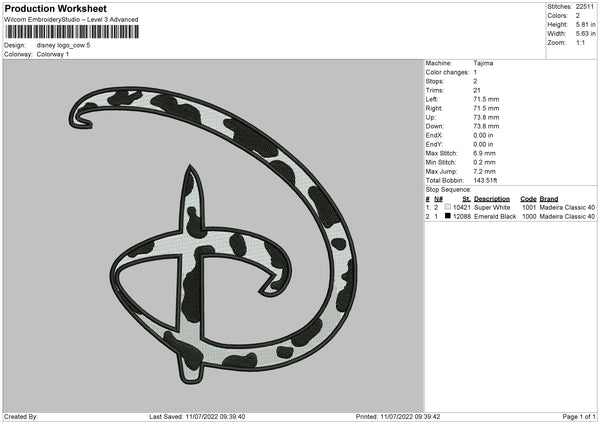 Disney Cow Print Embroidery File 4 sizes