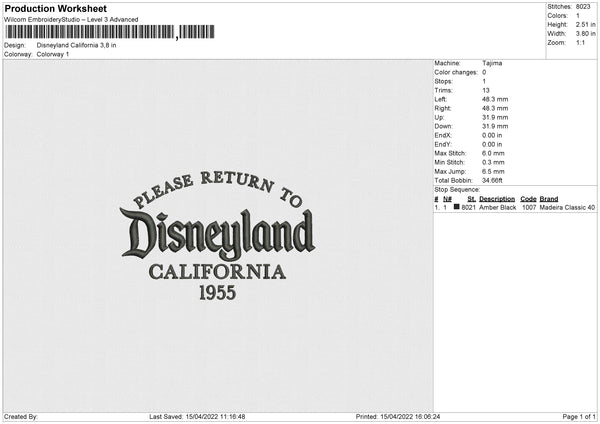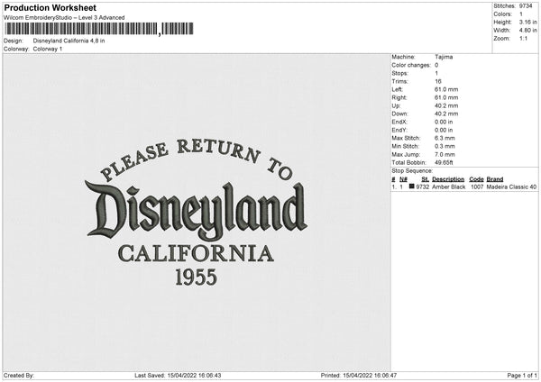Disneyland California Embroidery File 4 size