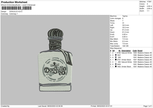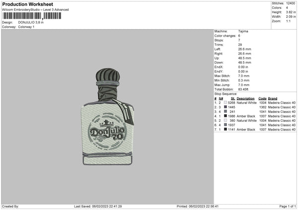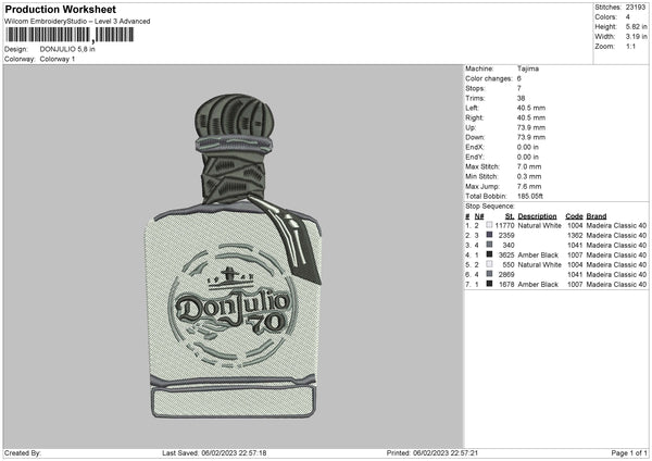 Djulio Bottle Embroidery File 6 sizes