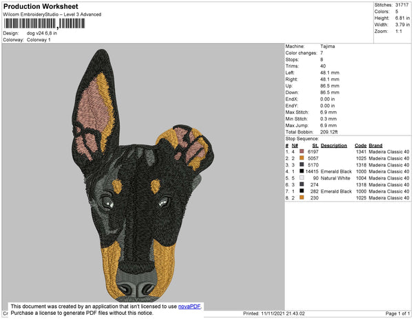 Dog Head V24 Embroidery File 4 size