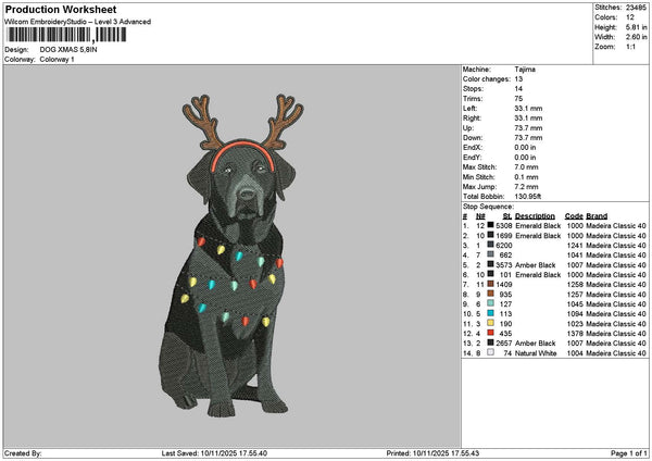 Dog Xmas 1011 Embroidery File 6 sizes