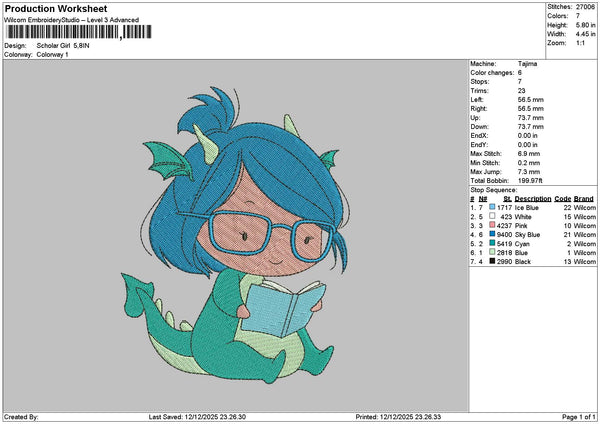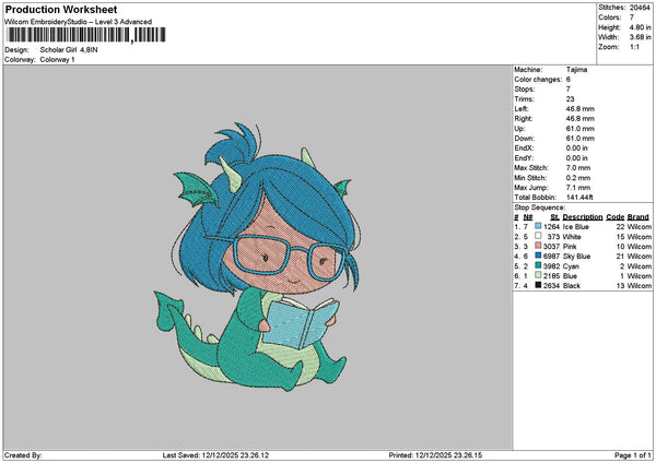 Dragon Girl Embroidery File 6 sizes