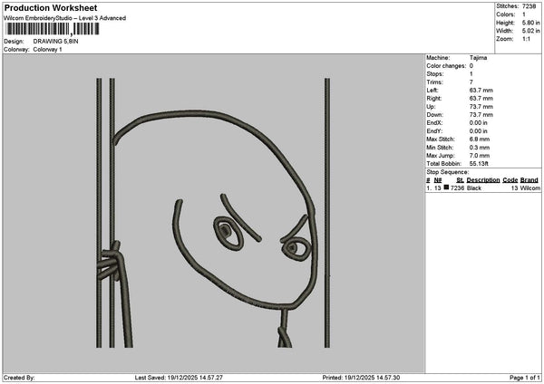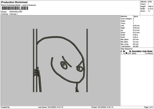 Drawing 1912 Embroidery File 6 sizes