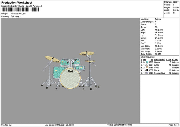 Drum2312 Embroidery File 6 sizes