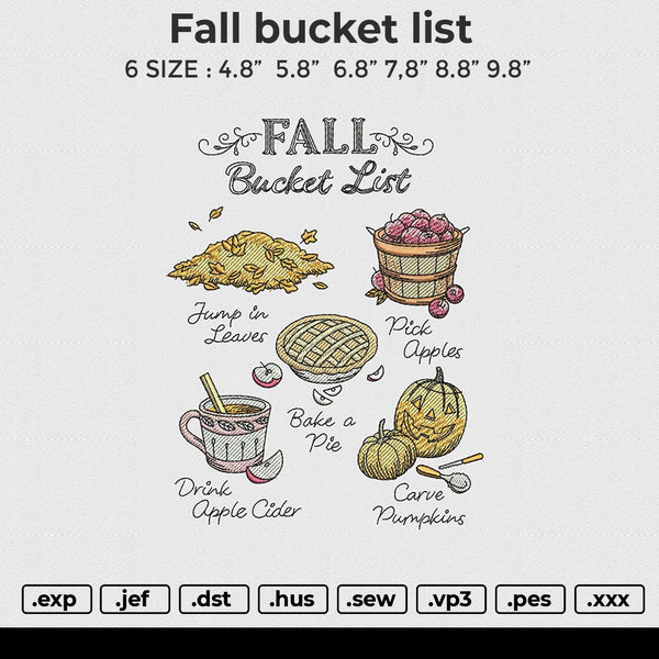 Fall bucket list Embroidery File 6 size
