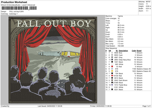 Fall Out Boy Embroidery File 4 size