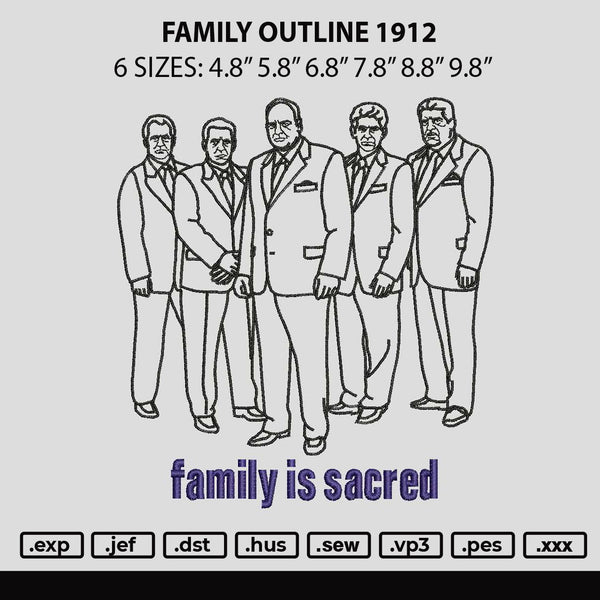 Family Outline 1912 Embroidery File 6 sizes