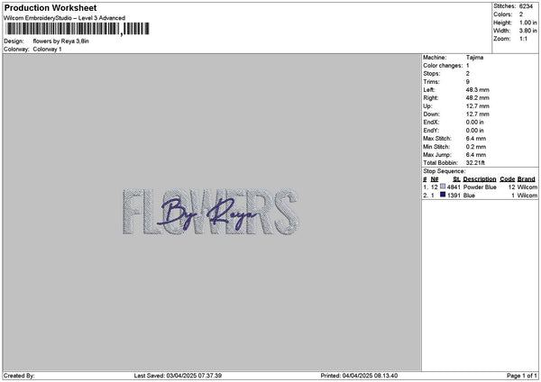 Flowerstext 0404 Embroidery File 6 sizes