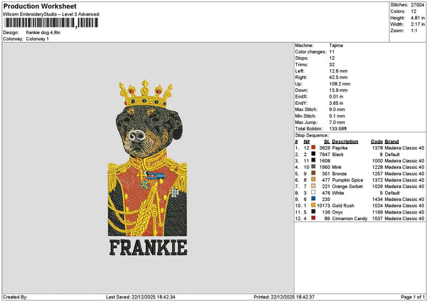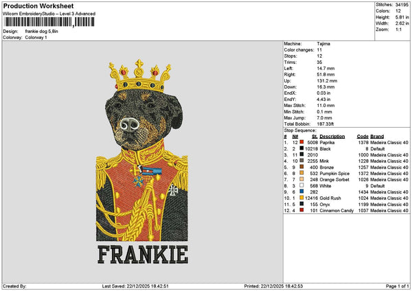 Frankie Dog Embroidery File 6 sizes