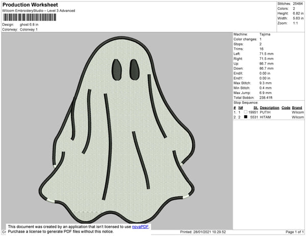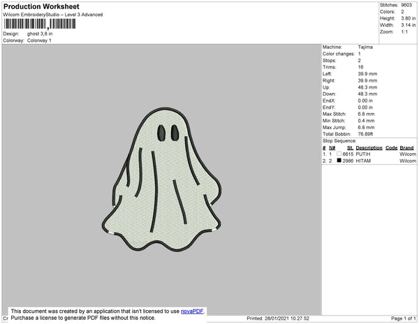 Ghost Embroidery File 4 size