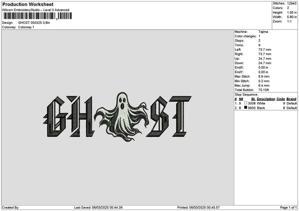 Ghost Text 0503 Embroidery File 6 sizes