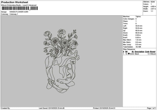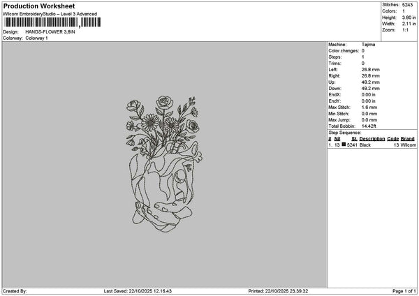 Hands Flower 2210 Embroidery File 6 sizes