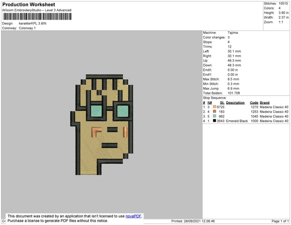 Head Character Embroidery File 4 size
