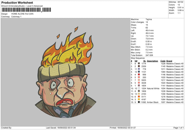 Home Alone Fire Embroidery File 5 sizes