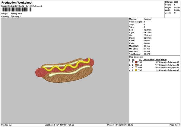 Hotdog Small Embroidery File 6 sizes