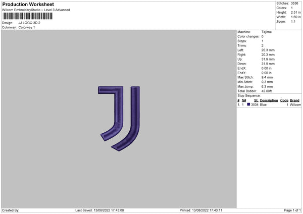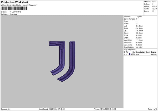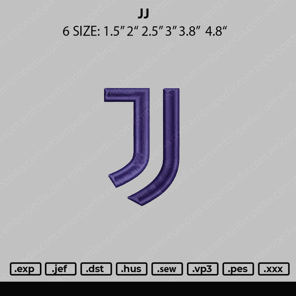 JJ Logo Embroidery File 6 sizes
