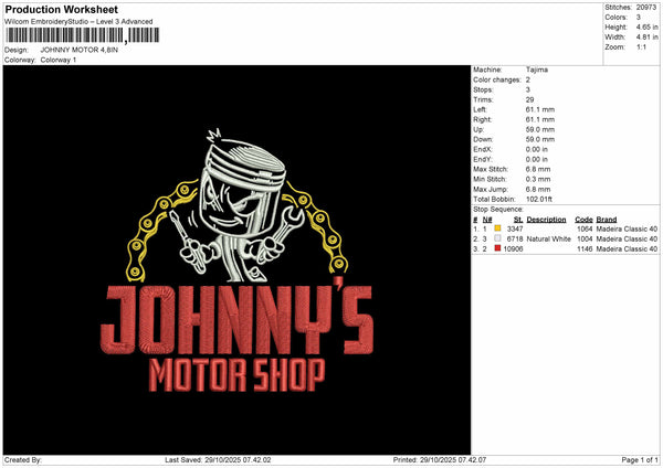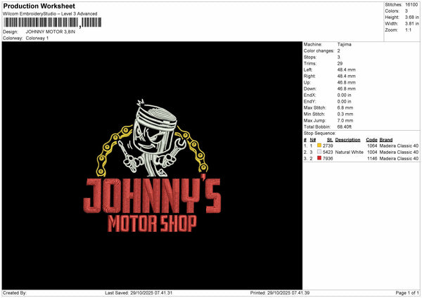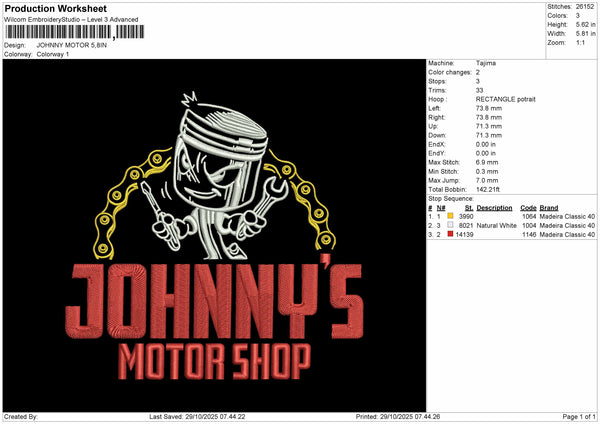 JOHNNY'S MOTOR Embroidery File