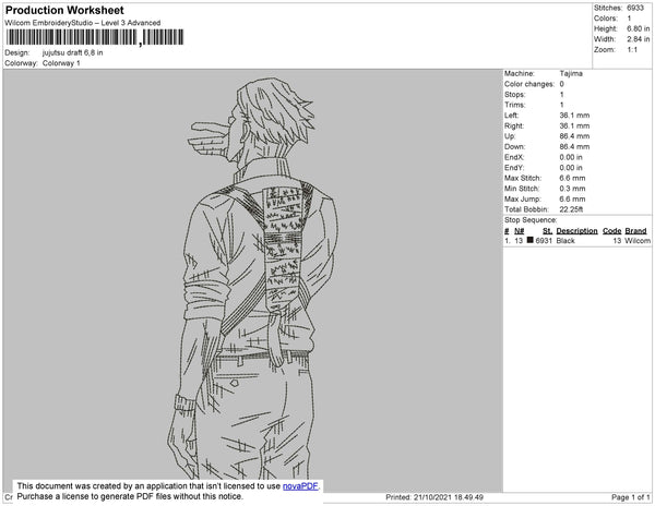 Jujutsu Draft Embroidery File 4 size