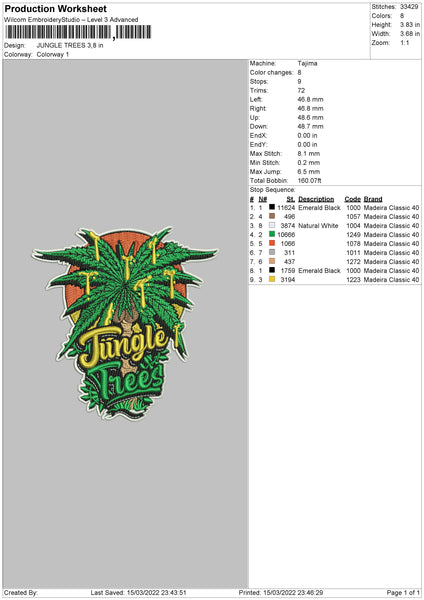 Jungle Trees Embroidery File 4 size