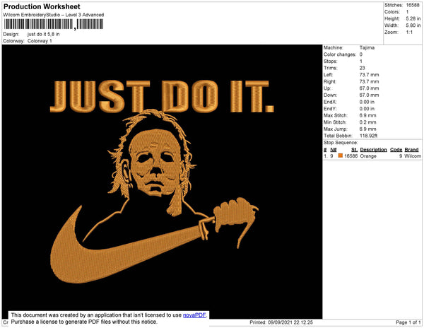 Just Do It Swoosh Embroidery File 4 size