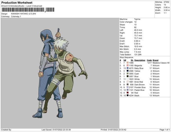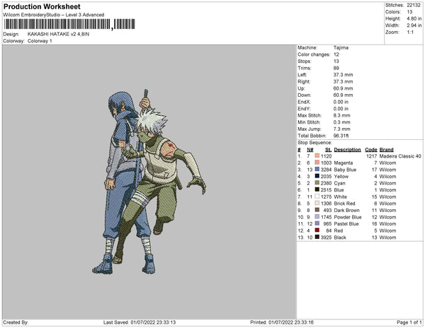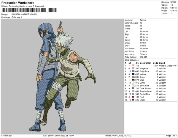 Kakashi Hatake V2 Embroidery File 4 sizes