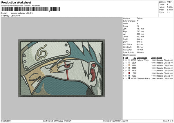 Kakashi Rectangle V6 Embroider File 5 sizes