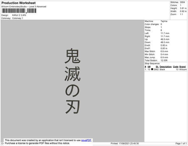 Kanji 2 Embroidery File 4 size