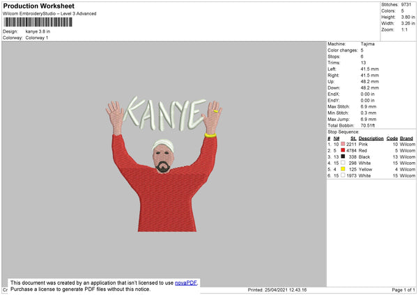 Kanye Embroidery File 4 size