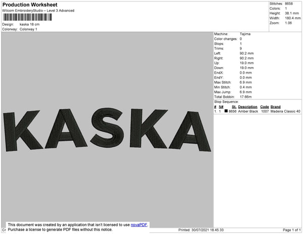 Kaska Text Embroidery File 2 size