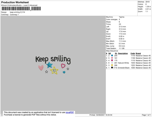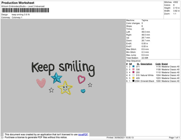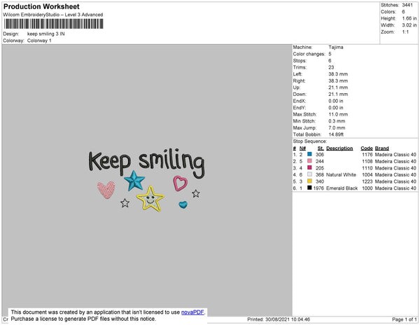 Keep Smiling Embroidery File 3 size 3 file
