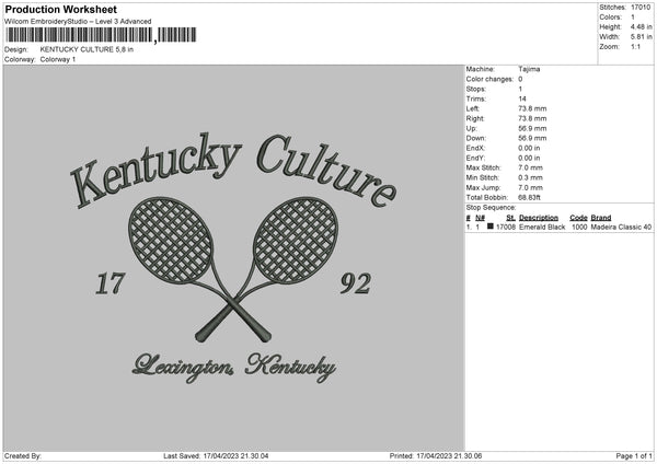 Kentucky Embroidery File 6 sizes