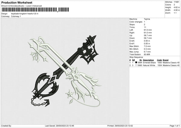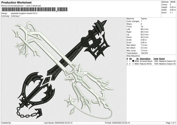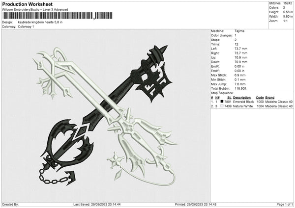 Keyblade kingdom hearts Embroidery File 6 size