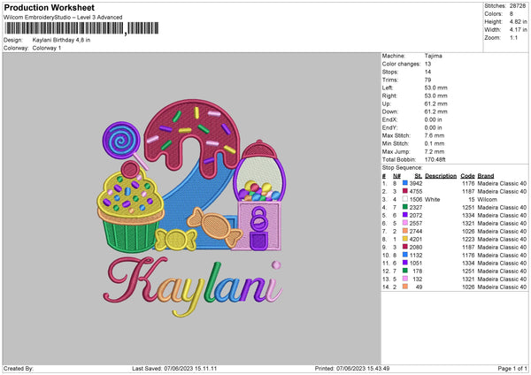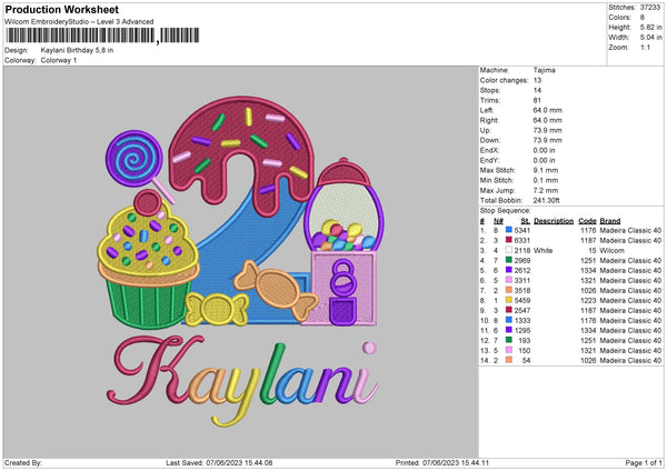 Kaylani Birthday Embroidery File 6 sizes