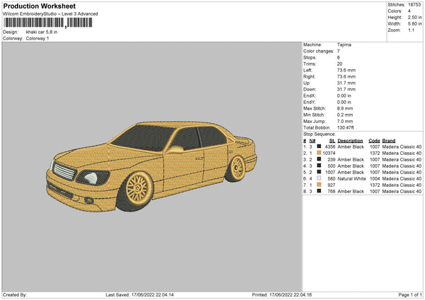 Khaki Car Embroidery File 4 size