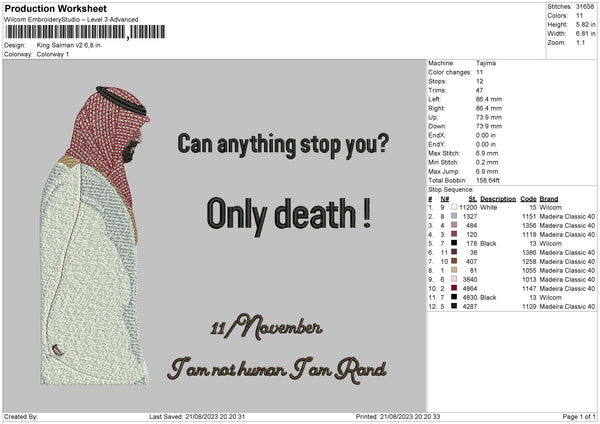 King Salman V2 Embroidery File 6 sizes