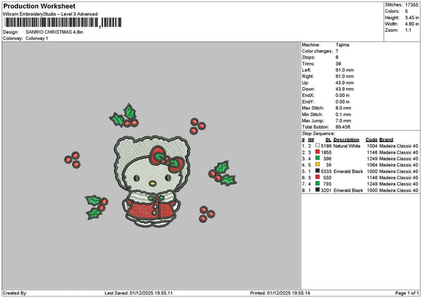 Kitty Xmas 0112 Embroidery File 6 sizes