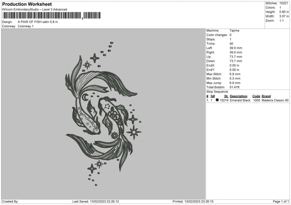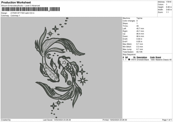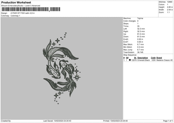 Koi Fish Embroidery File 6 sizes