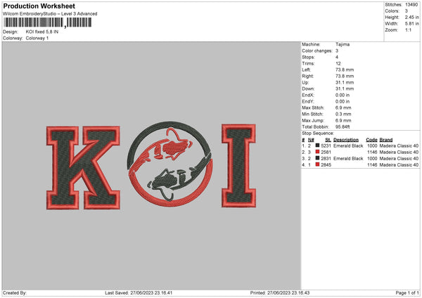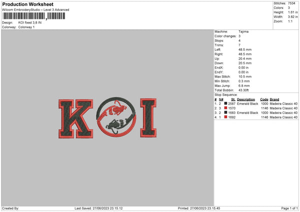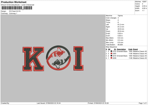 Koi Text Embroidery File 6 sizes