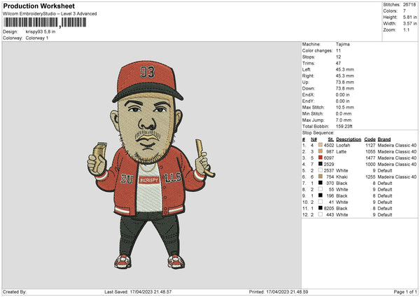 Krispy Embroidery File 6 sizes