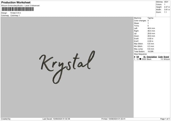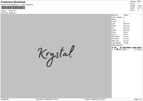 Krystaltext Embroidery File 6 sizes