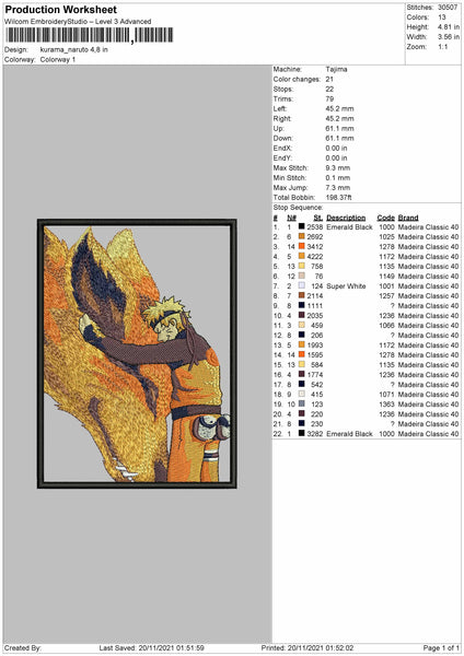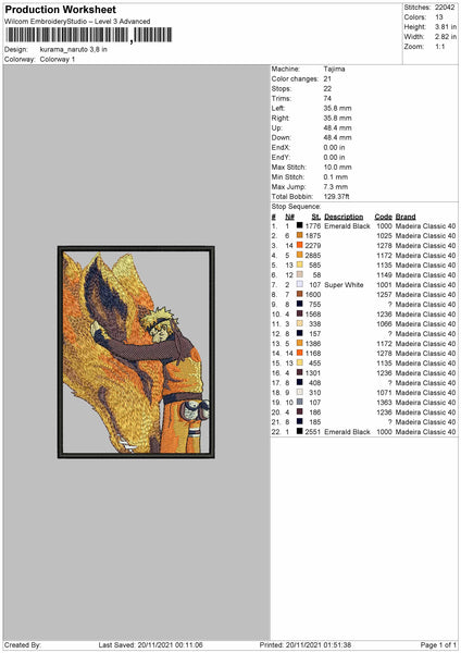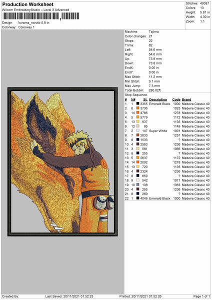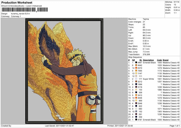Kurama Naruto 02 Embroidery Fa=ile 4 size