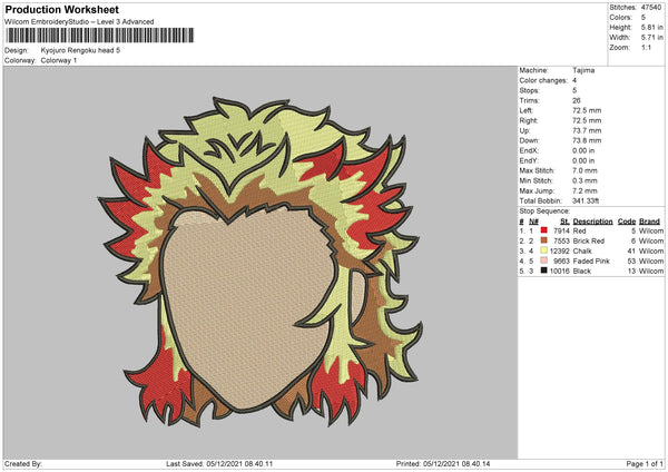 Kyujuro Rengoku Embroidery File 4 size