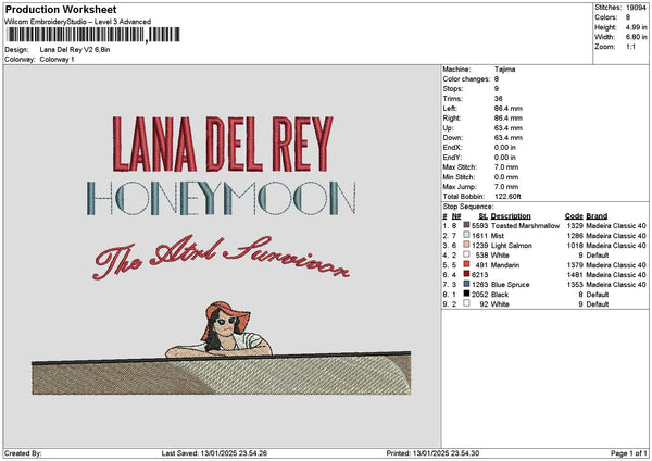 Lanatext 1301 Embroidery File 6 sizes