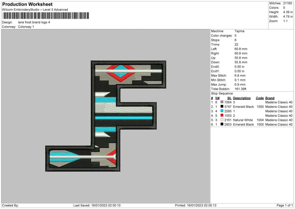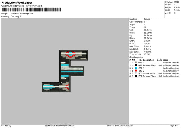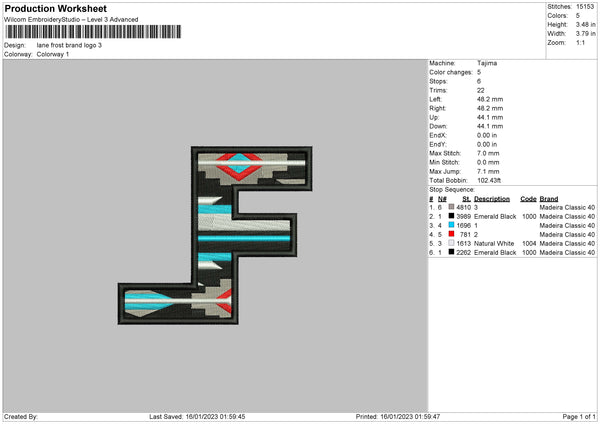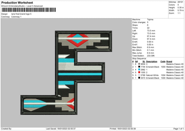 Lane F Embroidery File 6 sizes