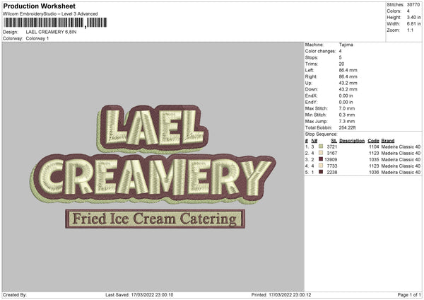 Leal Creamery Embroidery File 4 size
