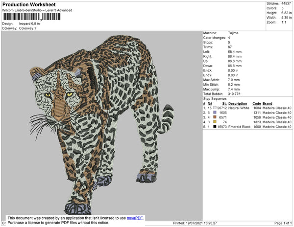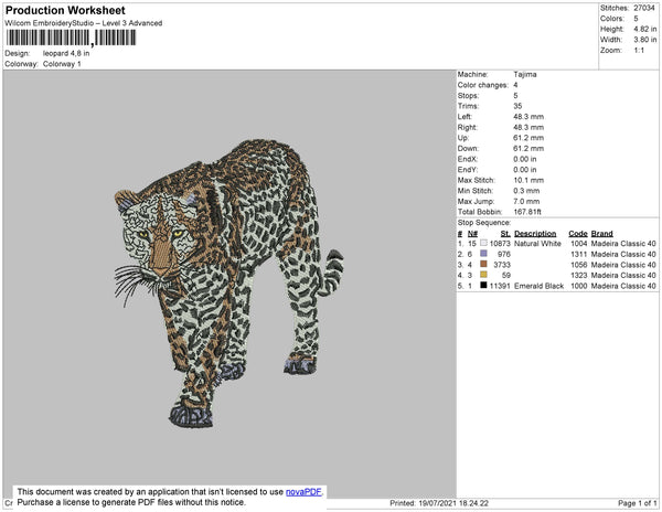 Leopard Embroidery File 4 size