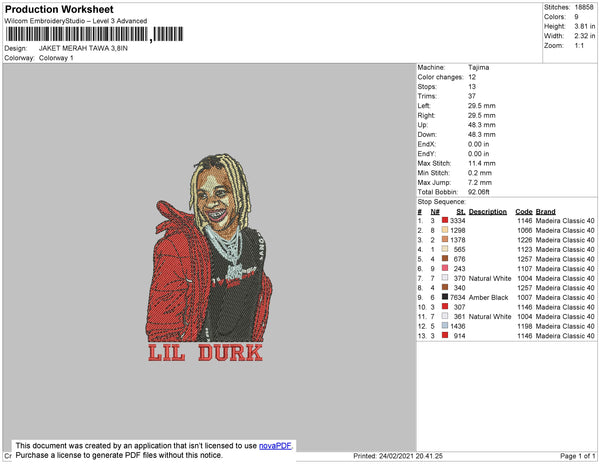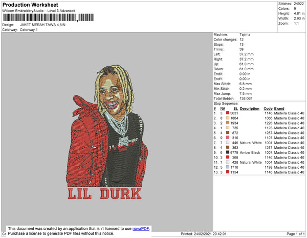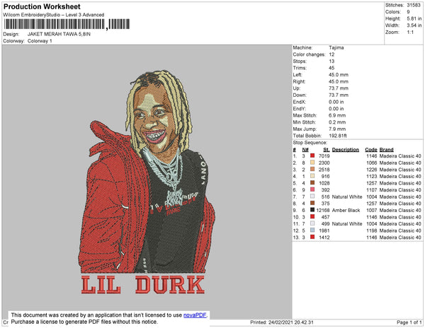 Lil Durk Embroidery File 4 size