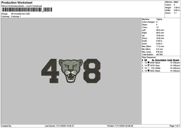 Lion 48 Embroidery File 6 sizes