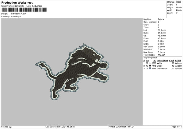 Lion Black Embroidery File 6 sizes