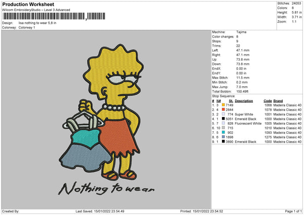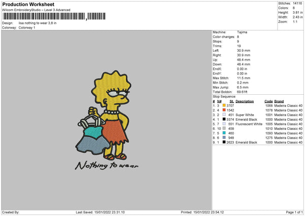 Lisa Nothing Wear Embroidery File 4 size